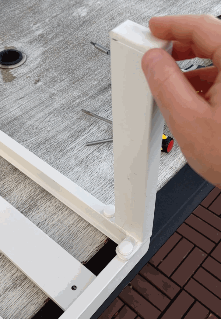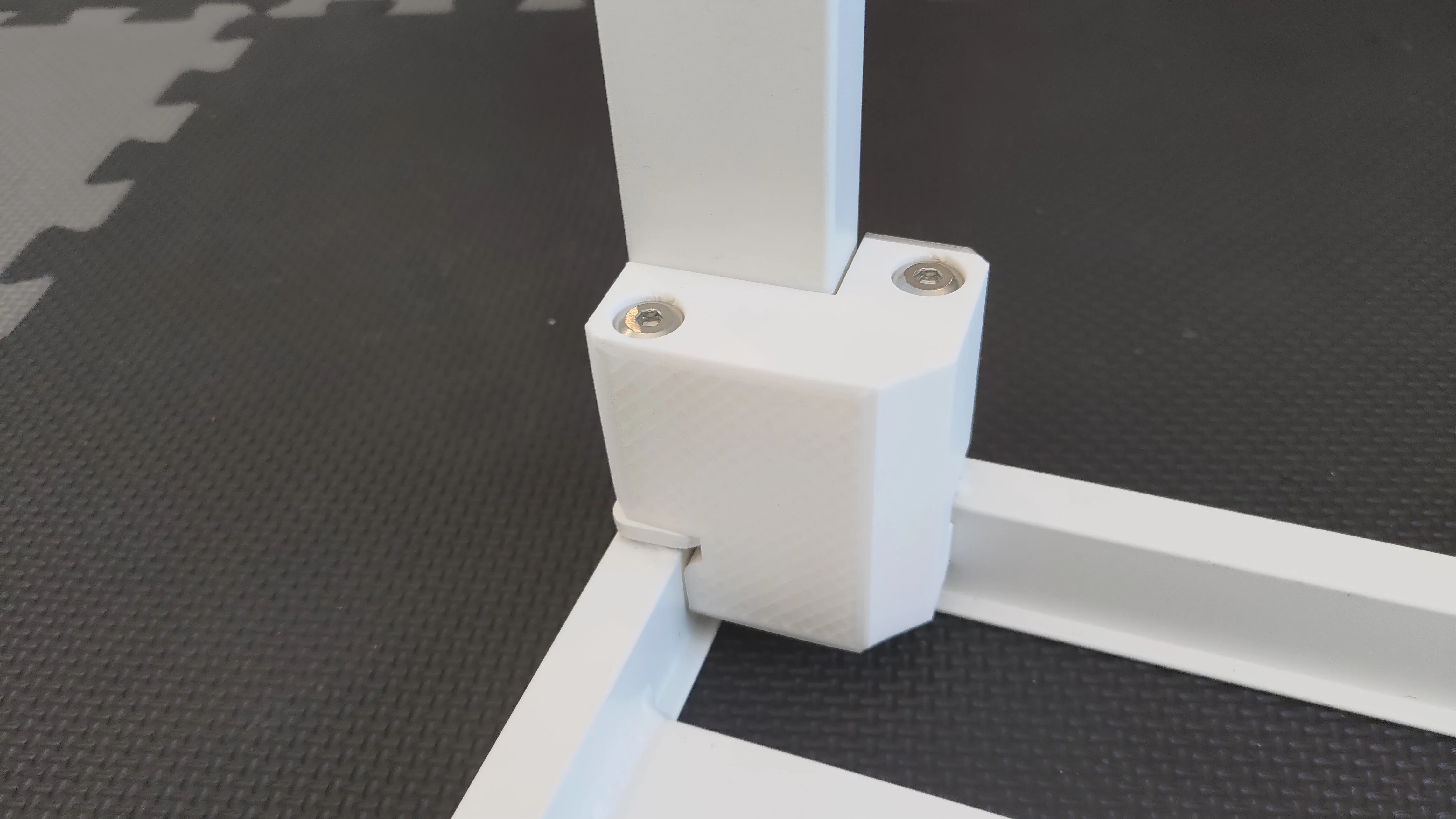 I was honestly so proud this worked the first time. We have a great aluminum outdoor furniture set that we got as a wedding gift, but these little ottomans were very wimpy compared to the rest of the set and the legs started to wiggle within a year. I was afraid someone would sit on one and collapse, so I solid-CAD modeled the “inverse shape” of the joint between the leg and the frame, and replaced the short M6 bolts it came with with the long silver ones you see flush with the part. The reinforcement is super solid now because it simply keeps everything tight - but the load is still on the original metal, not the plastic. It’s ABS though, so should be strong for years outside. I love Bambu’s white ABS.. it’s all over the place in these prints.