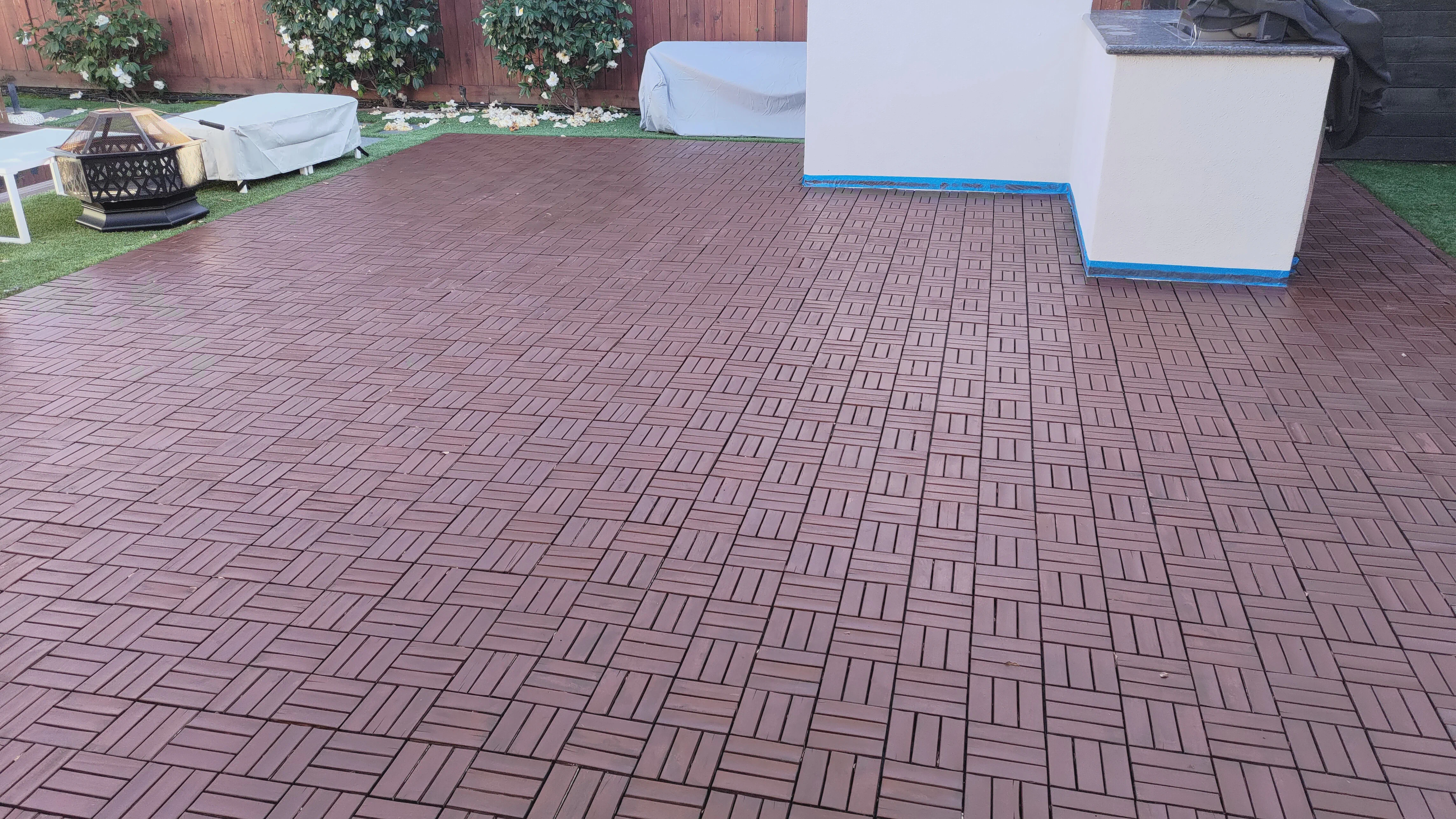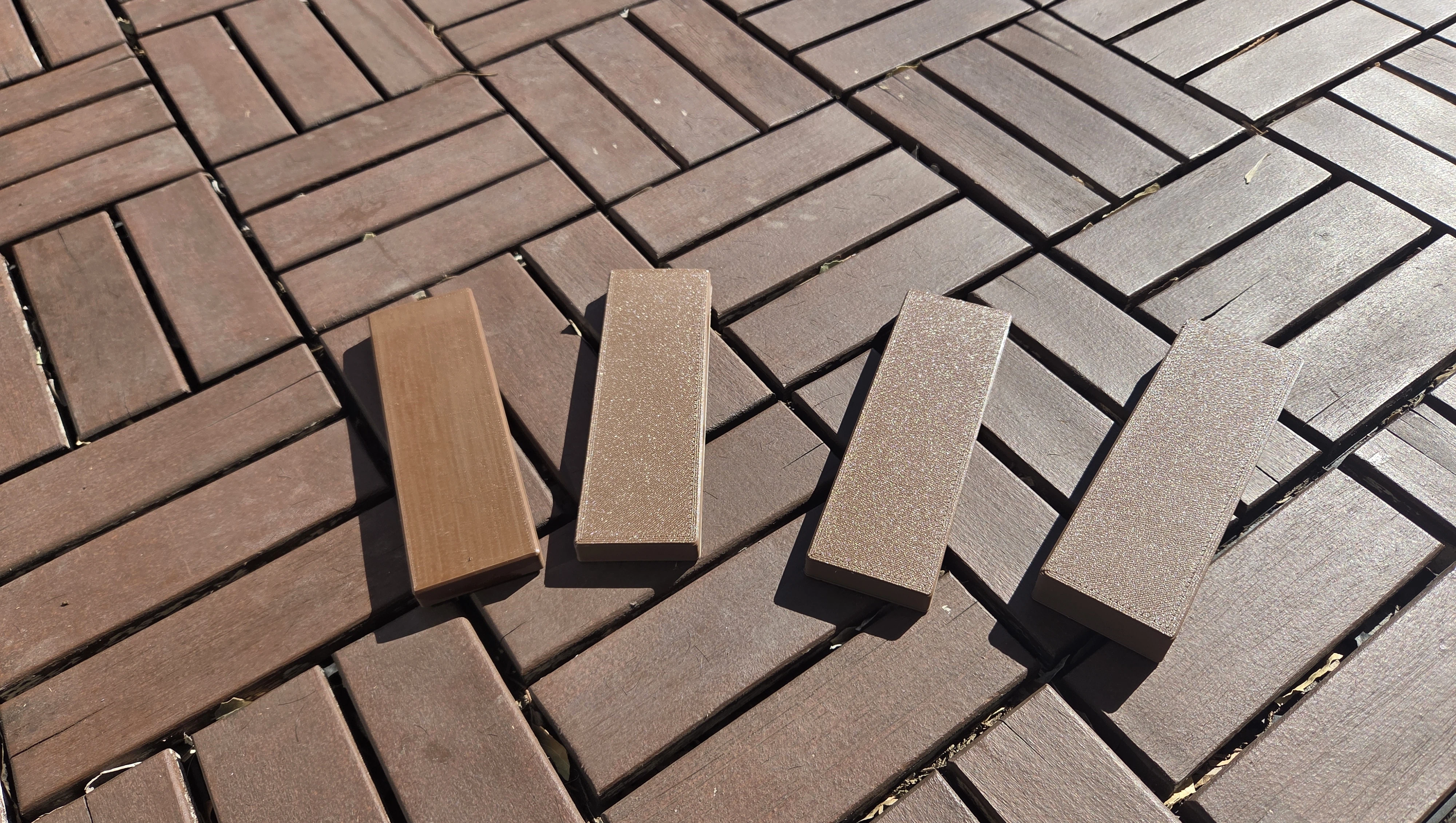 This is one of my most cost-saving “reprints” ever. I have returned to print more at least three times since I modeled these two years ago. We have a deck of wood tiling on a grid from Ikea in the back, and sometimes the wood cracks and a tile comes loose. When I first noticed this, I happened to have some brown ASA that matched the color almost perfectly, and ever since I have been printing replacements when needed. If you think that would look obvious - check out the second pic of the tiling after I refinished it. There are at least 5 replacement tiles visible in that picture.