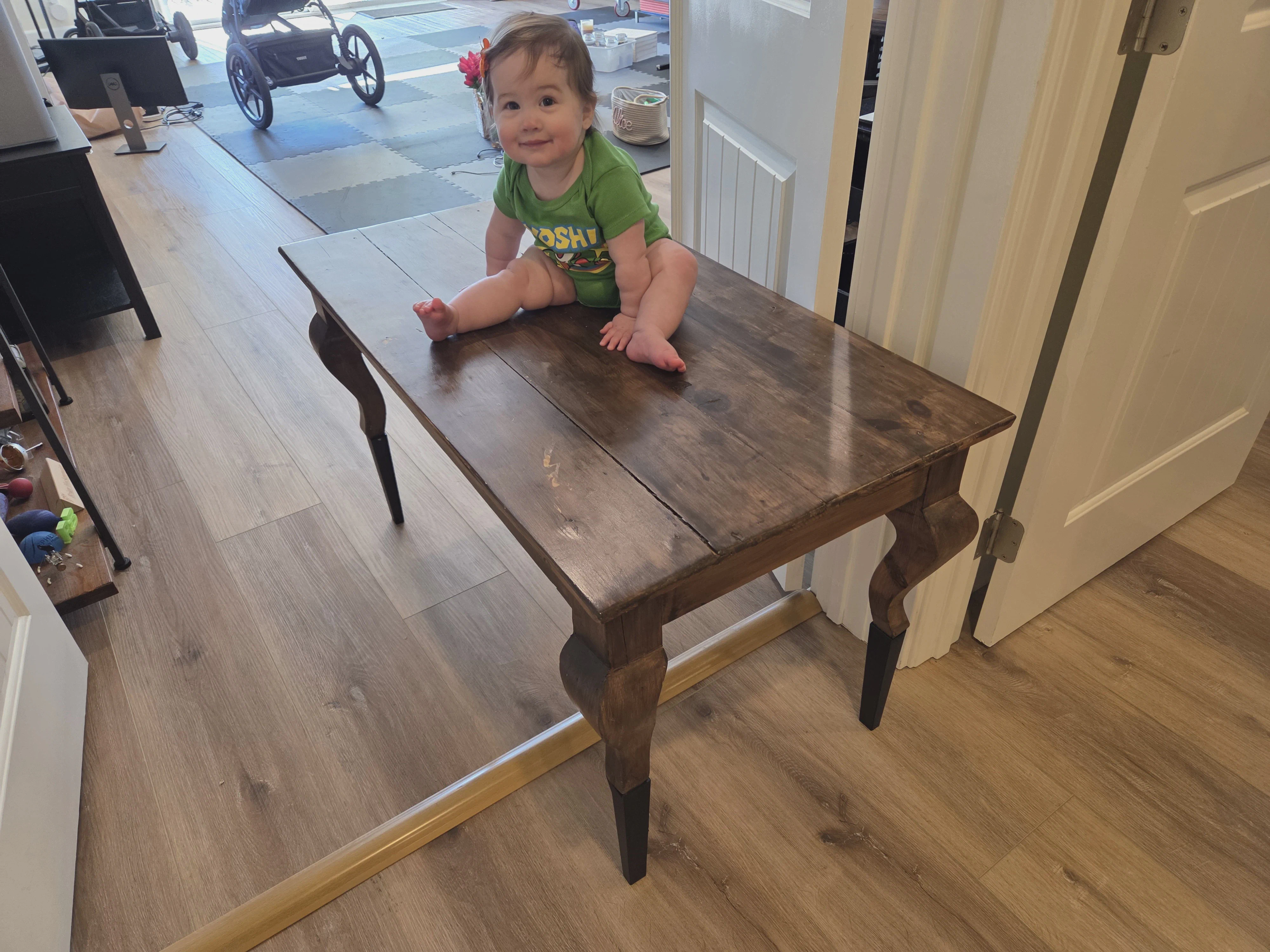 My latest print: stilts for an old coffee table we had in storage. We were looking for a piece of furniture for under our new secondary screen for Kaitlin, and realized this table was exactly the right footprint - it just needed to be higher. I realized halfway into modeling and test-printing that each foot of the table had very different dimensions, so this is actually four unique models custom for each foot, which I then screwed in on 2 sides each and ABS-glued into place for a solid connection. Strong enough to hold an Alice! The right sized media stand I was eyeing on amazon was $250 and it wasn’t even made with solid wood. I love frugal printing!